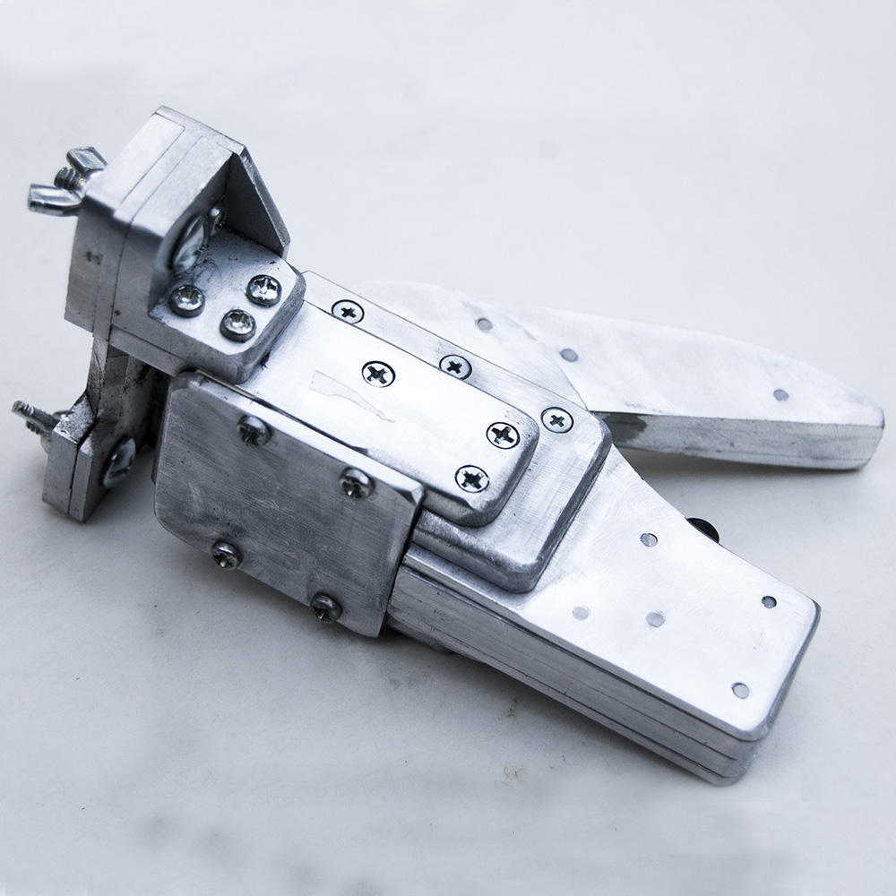 The top guard is also spring loaded to lift up so that you can place the strander onto the middle of a section of lace, instead of needing to feed it all the way through from the beginning as is necessary with the other basic Australian Strander.